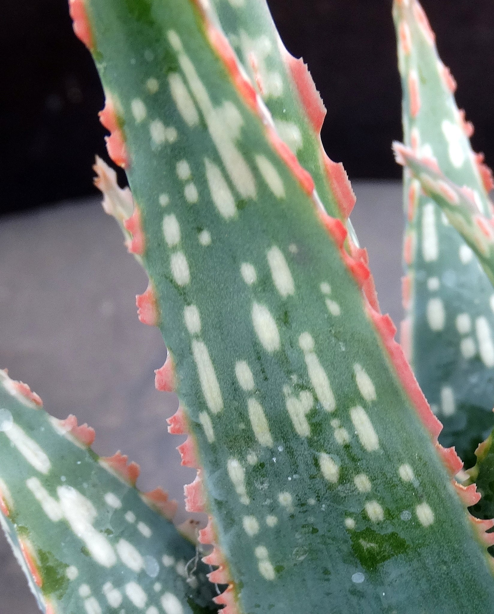 Aloe Hybrid An attractive hybrid Aloe resulted from an open cross of my hybrid Aloes. In good light the color blue with red edges.
