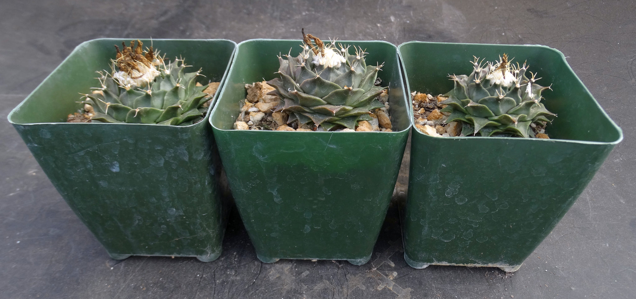 Obregonia denegrei The Artichoke Cactus. One of the most unusual and popular species of cactus. It is a slow growing species with flattened leaf like tubercles. Requires general cactus care but is more sensitive to overwatering. Protect from frost.