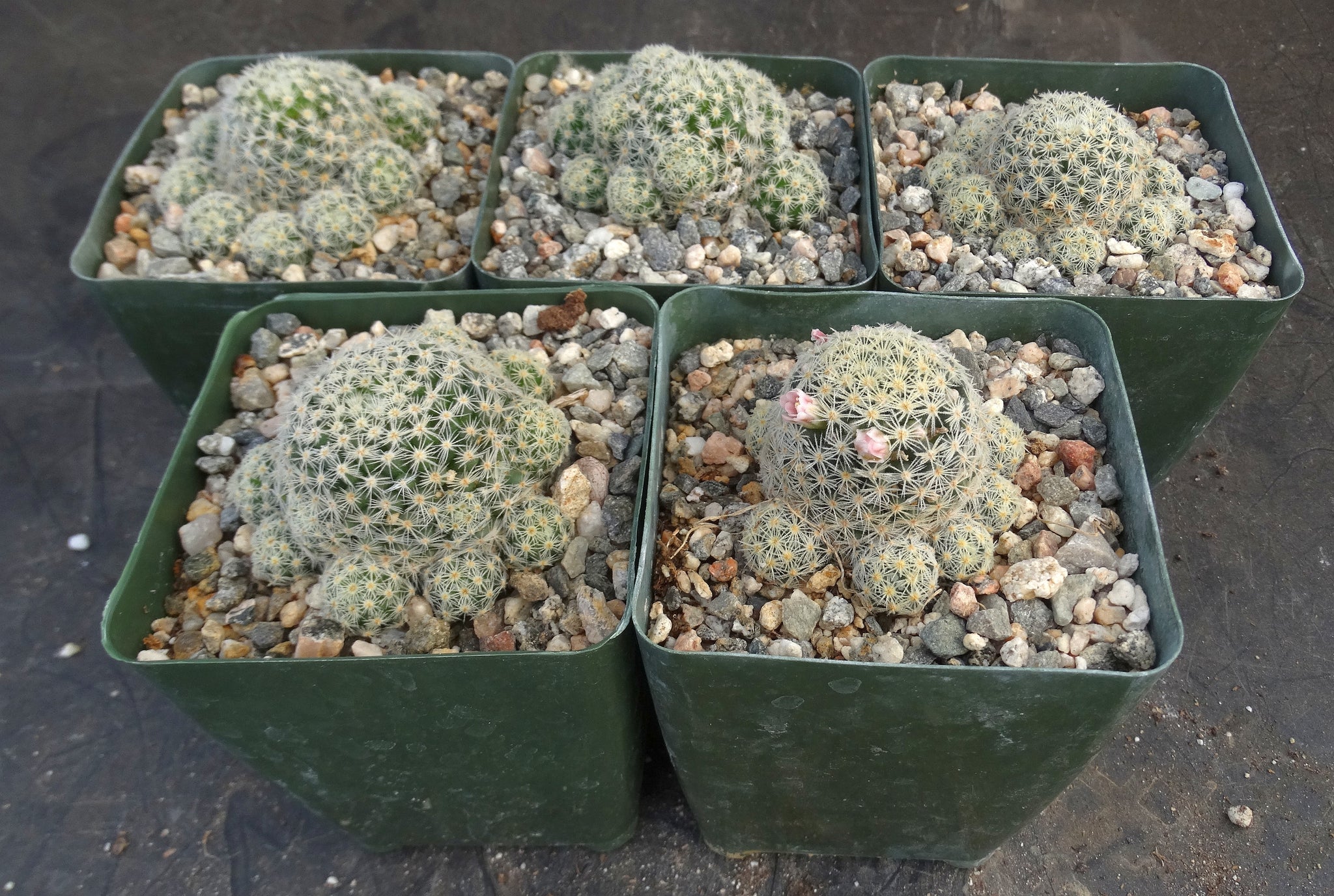 Mammillaria schiedeana ssp. giselae The miniature form of this attractive species covered in tufts of soft yellow spines. The normal form has heads 3-4" diameter when mature while the giselae form is usually 1-2". The plant is a heavy clumper, eventually filling out pots with dozens of heads. The flowers small and pink and the fruit are bright red. Takes normal cactus care. Protect from frost.