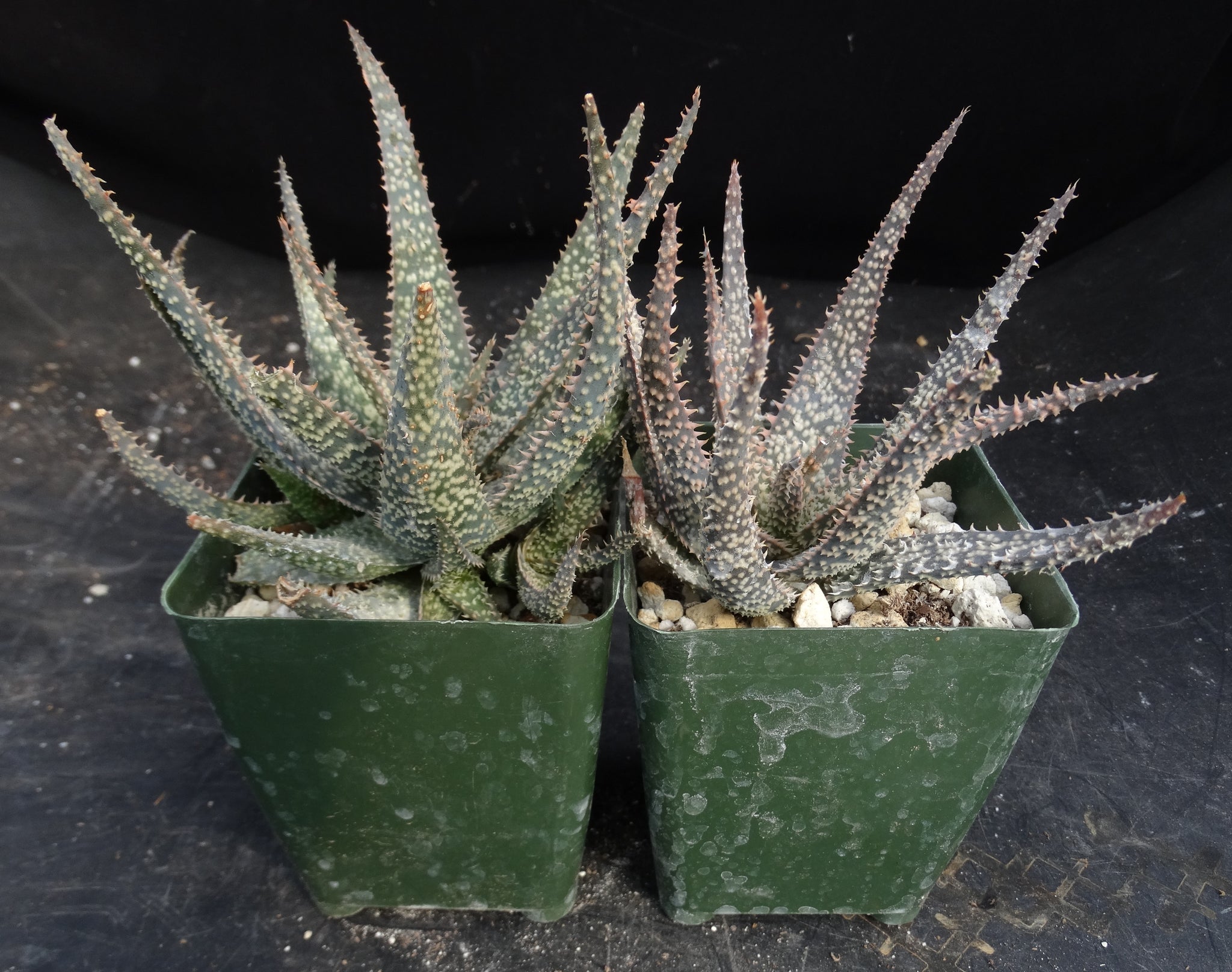 Aloe x 'Spider Legs' A nice original Aloe hybrid with gray brown leaves with white and pink prickles.