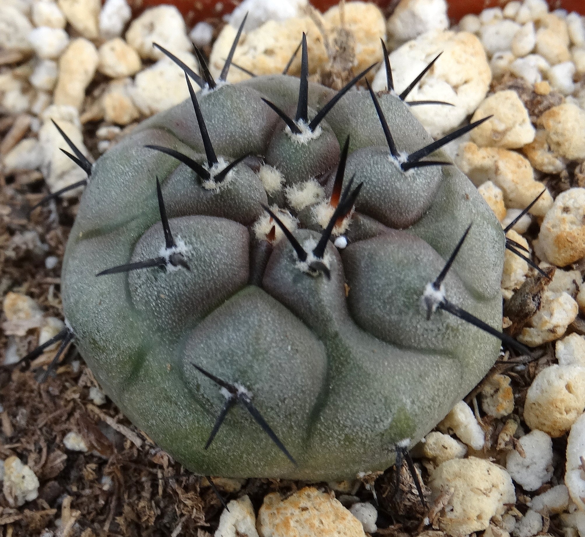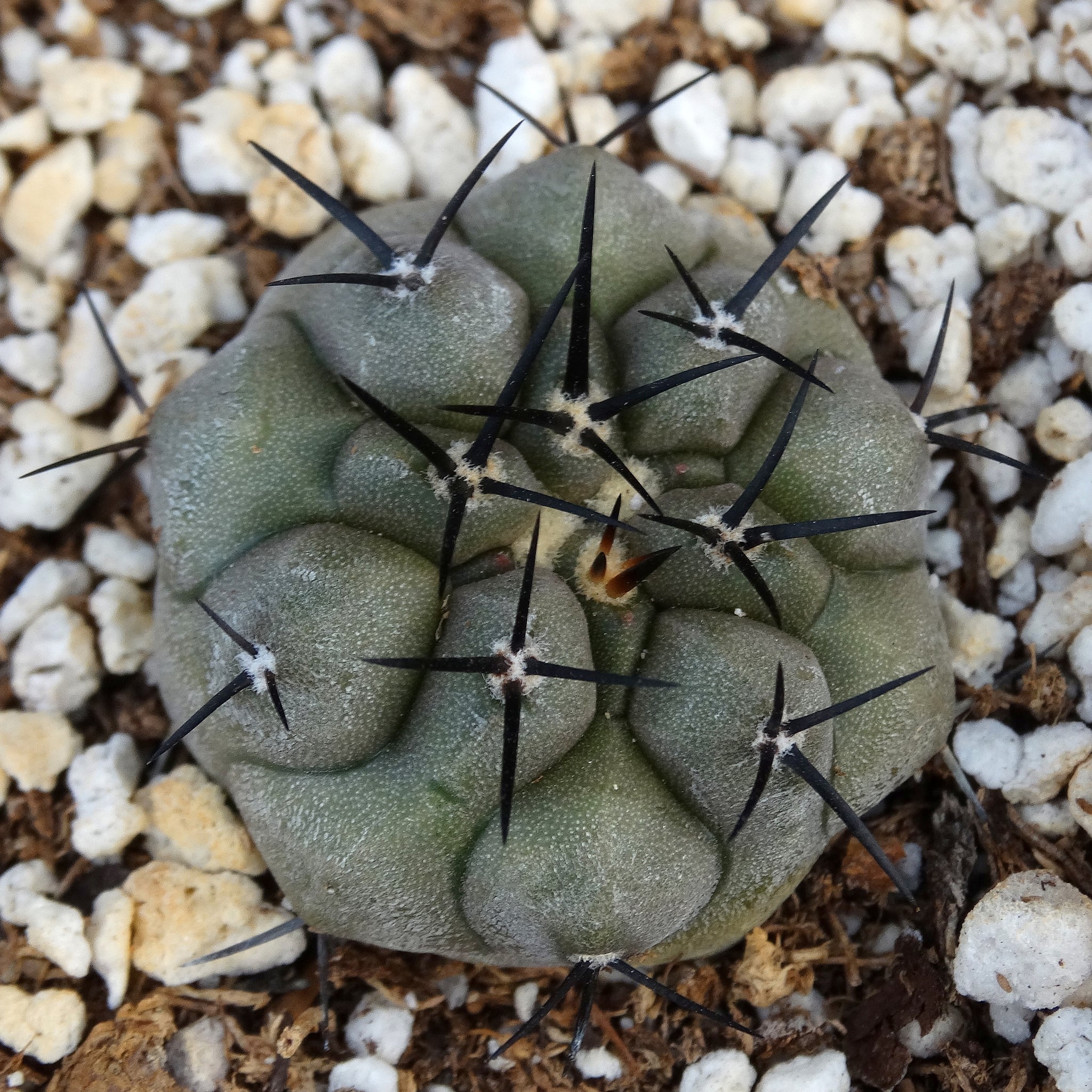 Copiapoa cinerea A very nice gray cactus with black spines. They will form clumps in time. Requires general cactus care. Sensitive to excessive sun. Protect from frost.