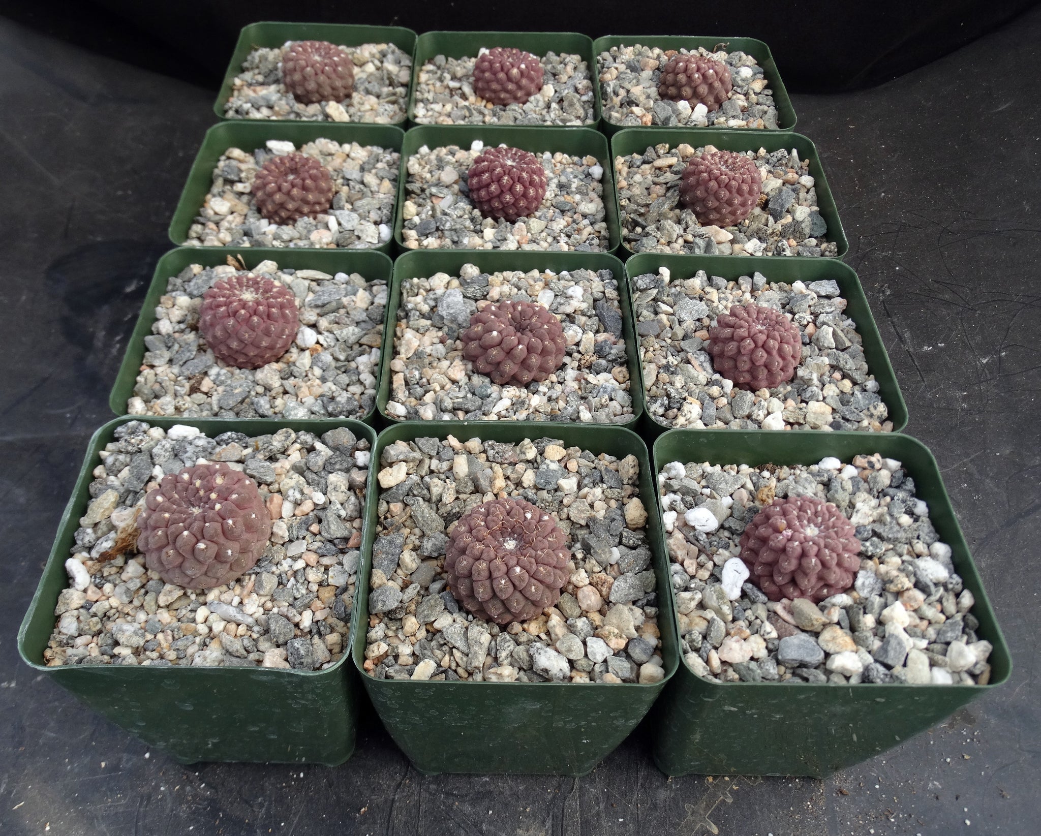 Eriosyce napina f. glabrescens Also known as Neochilenia napina. A beautiful small greenish brown to pink or purple cactus. The spines are so tiny as to make is effectively spineless. Like most Eriosyce, this species forms a tap root. Flowers are pinkish orange. Requires general cactus care, but be careful not to overwater as tap rooted species are more sensitive to rot. Will clump in time. Protect from frost, though it is said to be able to withstand light frost.