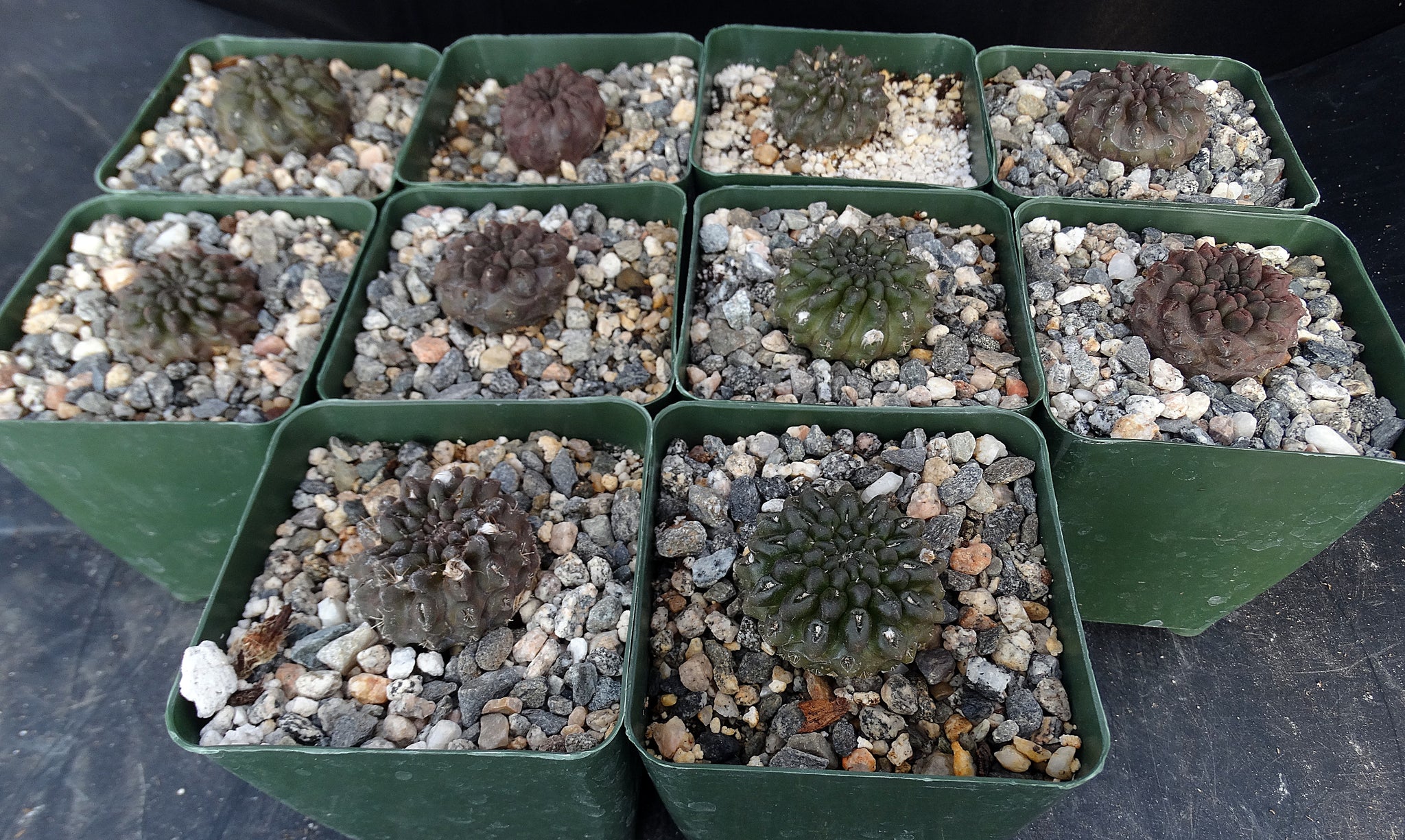 Eriosyce occulta A beautiful small chocolate brown to black spineless cactus. Like most Eriosyce, this species forms a tap root. Flowers are pinkish orange. Requires general cactus care, but be careful not to overwater as tap rooted species are more sensitive to rot. Will clump in time. Protect from frost, though it is said to be able to withstand light frost.