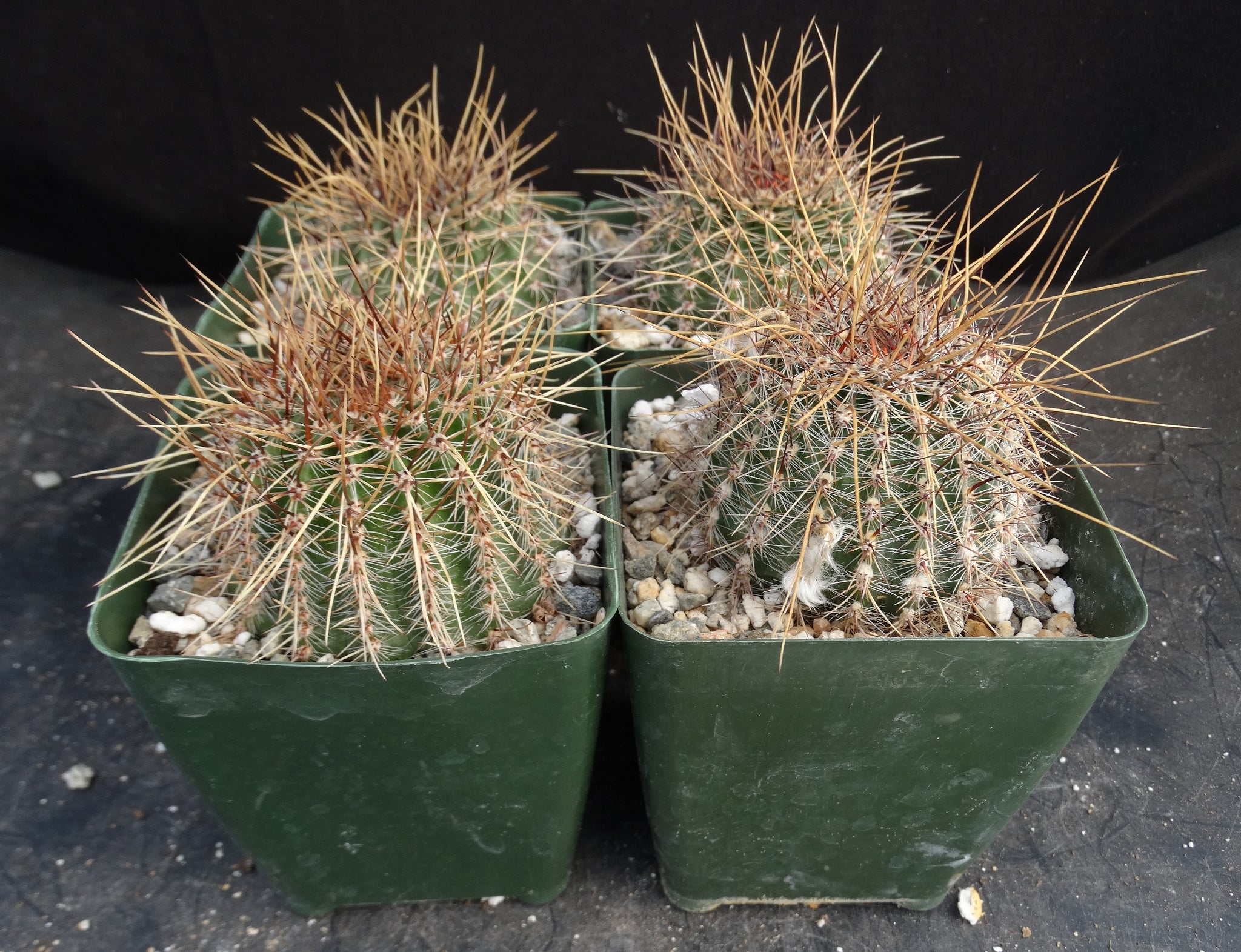 Lobivia aurea v sierragrandensis An attractive South American species that is covered in numerous white, brown, and orangish spines. They often produce extra long central spines that give the plant a "messy hair" sort of appearance. Will clump in time. Likes good light. Water when the soil is nearly dry. Protect from frost.