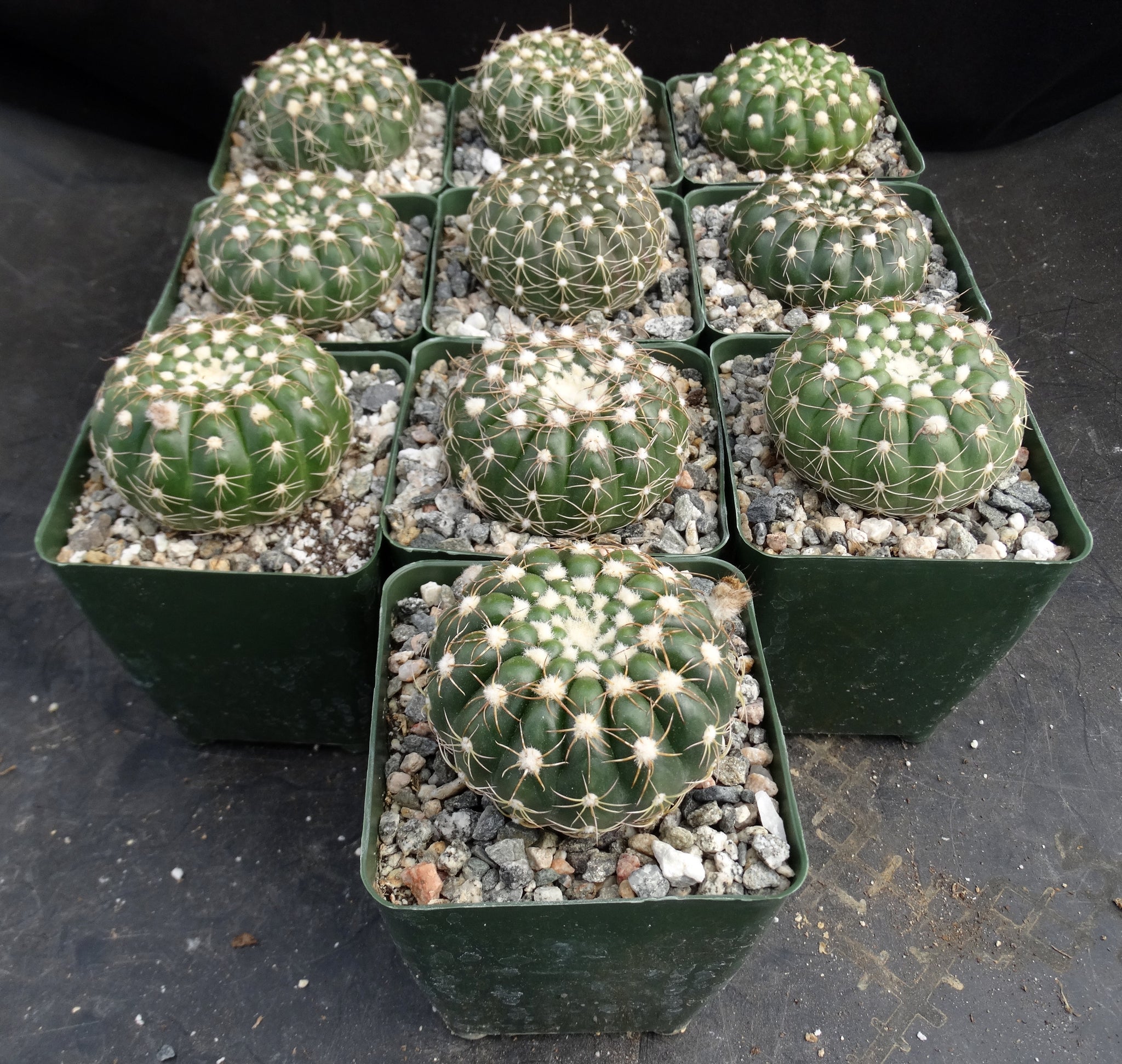 Parodia werneri Also known as Notocactus uebelmanniana. An attractive globular cactus with lumpy but shiny dark green skin. Spines are thin and curved. Stays small and will clump in time. Produces big purple flowers in the spring or summer. Requires general cactus care. Protect from frost.