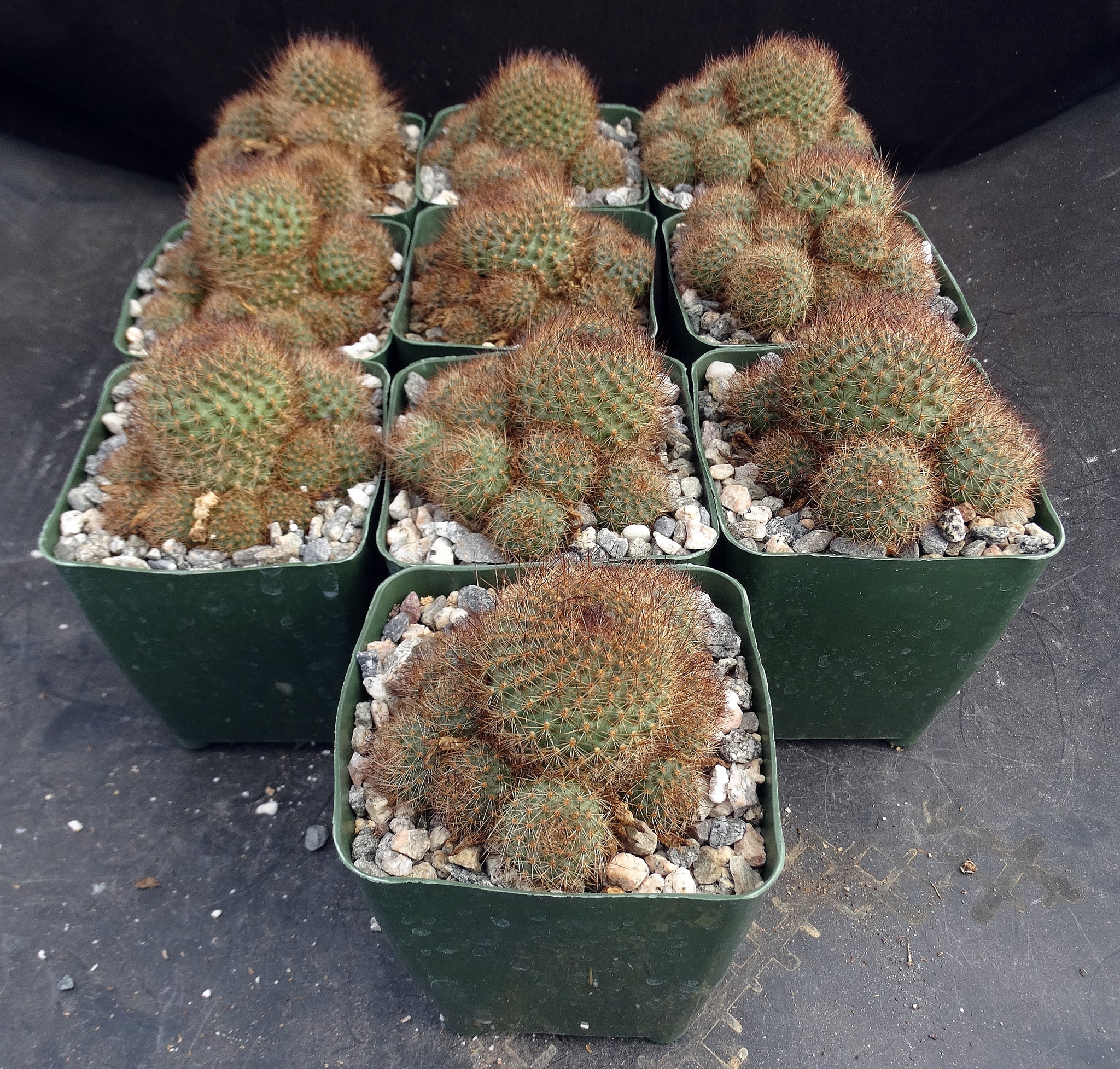 Rebutia fulviceta A purple green cactus with brown spines. Makes bright red flowers in the spring. During its main flowering period in spring to early summer it can be encircled in flowers. It stays small and it s a heavy clumper. Takes normal cactus care. Protect from frost.