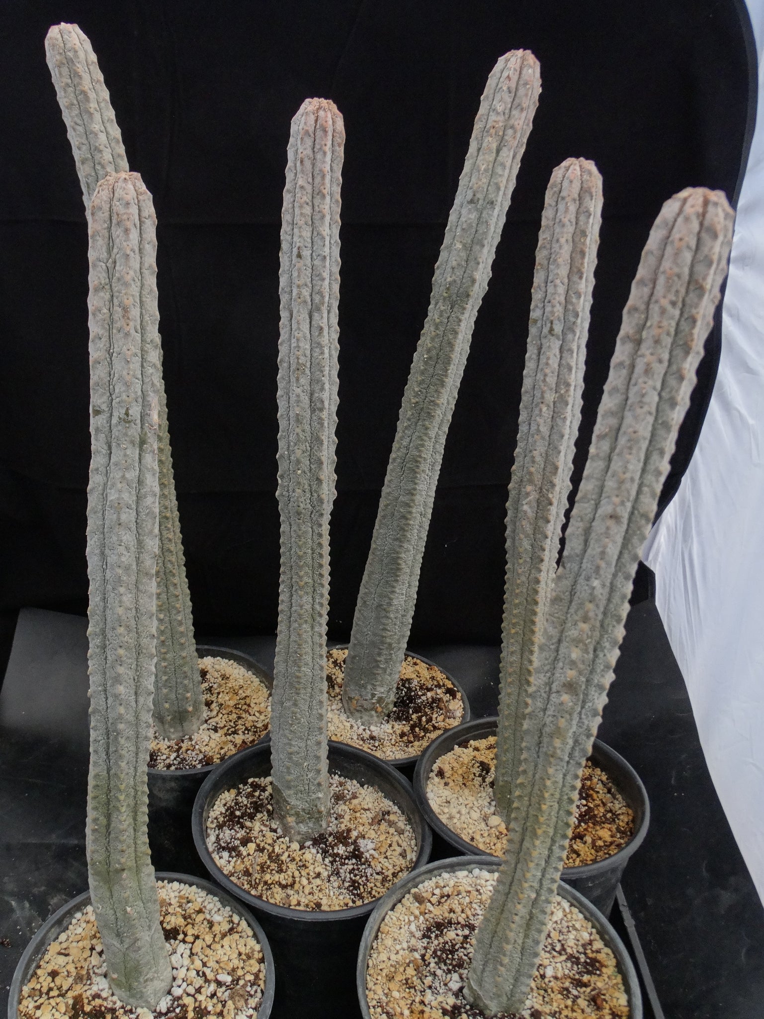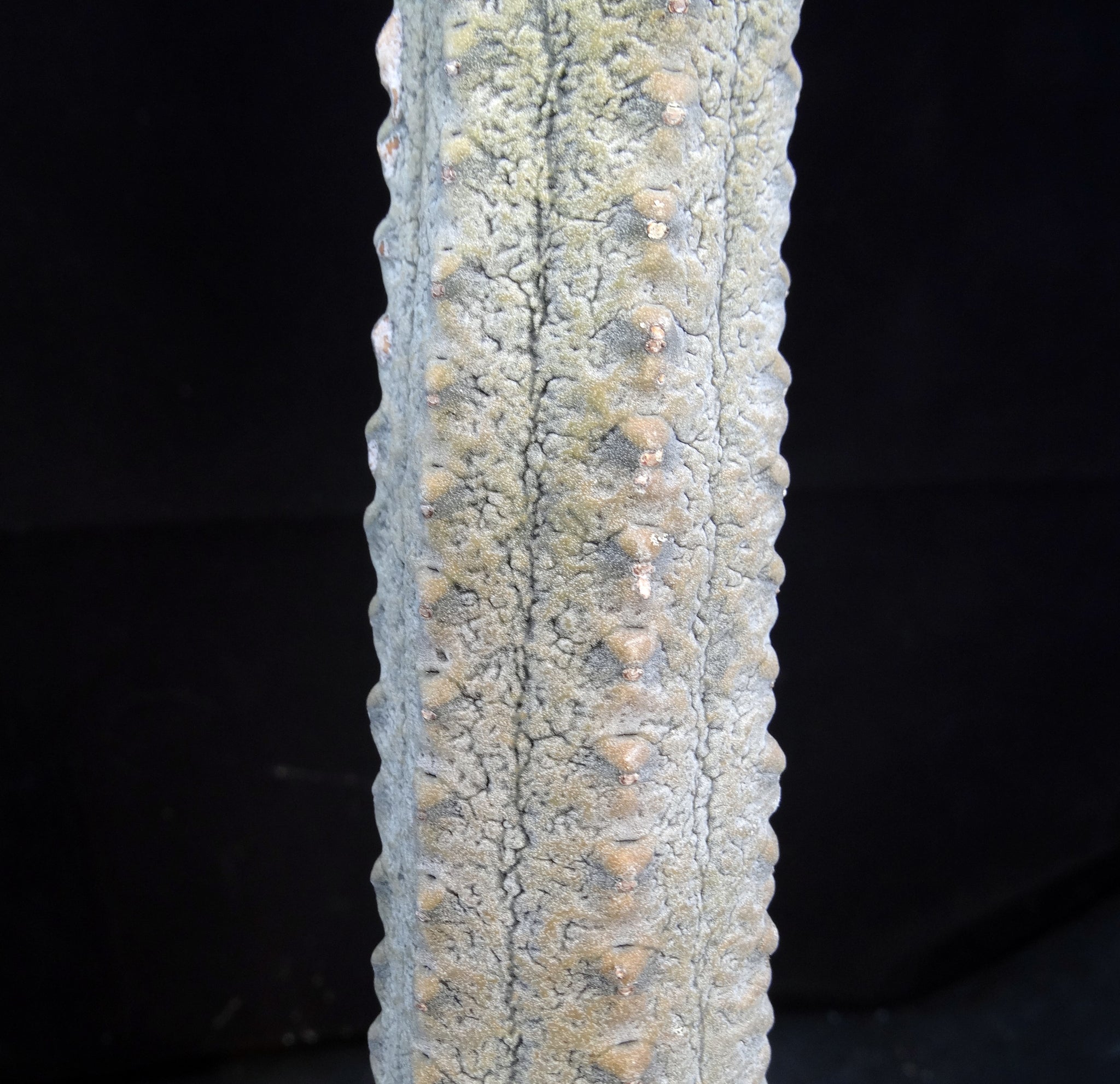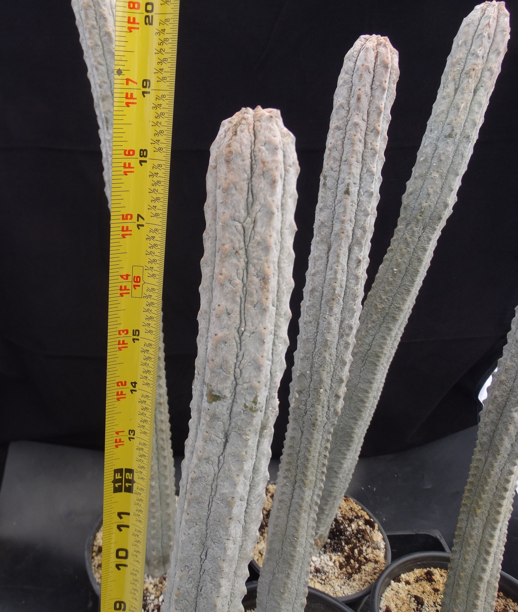 Euphorbia abdelkuri One of the most unusual of all Euphorbia, and possibly my favorite in the genus! This is a columnar branching species from a small island off the coast of Socotra. The most distinctive feature is the gray coating on the stems (brown on new growth) that looks like candle wax or elephant skin! The species is fairly easy to grow but is very slow, only increasing in size by a few inches a year. It needs good light and warm temperatures. It isn't especially rot prone if watered like a typical columnar Euphorbia which is allowed to dry between waterings.