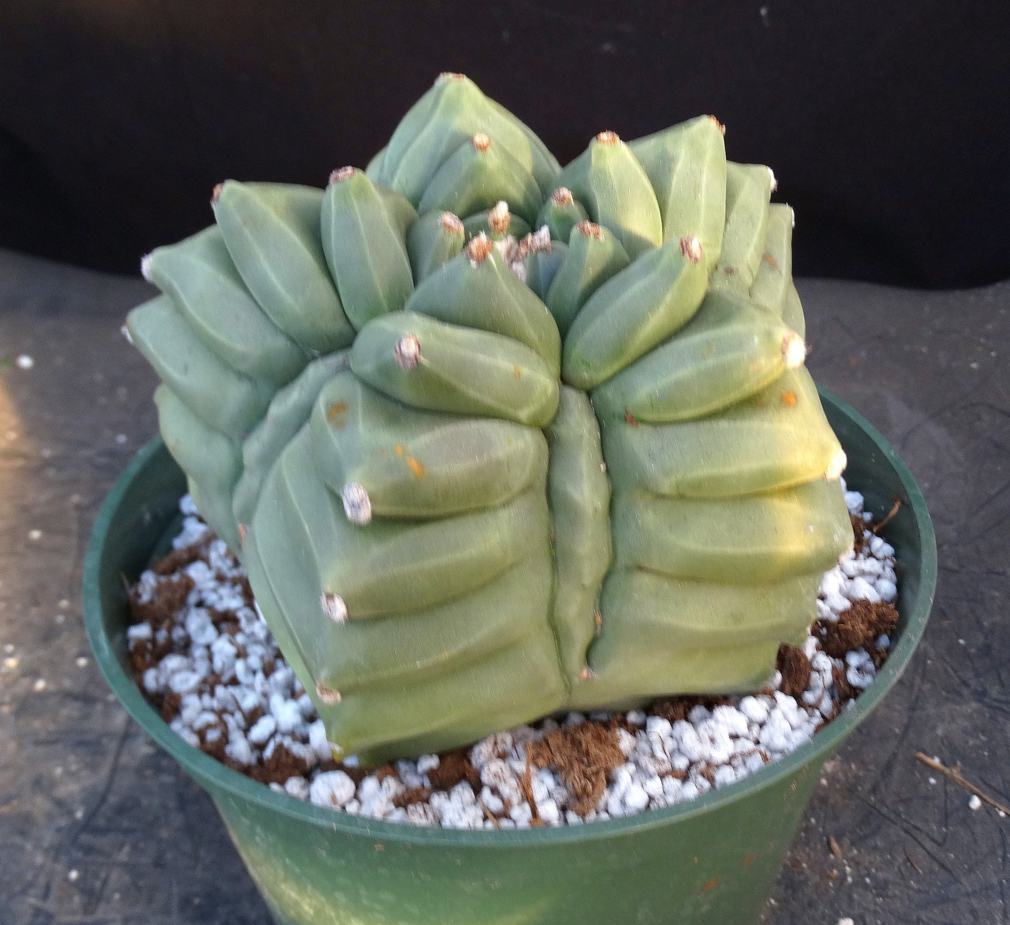 Astrophytum myriostigma 'Kikko'  A strange but beautiful Japanese cultivar of the Bishop's Cap cactus.  This cultivar is known for having prominent tubercles.  Flowers bright yellow and produced throughout the summer.   Easy to grow, just give normal cactus care and take care not to overwater, especially in winter.  Protect from frost.